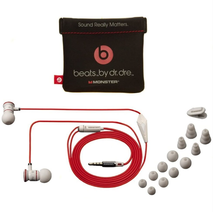 Dr. Dre Monster Beats In-Ear Headphones by iBeats give pure audio in an ultra-lightweight, colorful compact, designed for music enthusiasts who don't want to sacrifice sound for aesthetics. The housing's metallic, radial etching adds high-end flair while being very robust. The new iBeats are drenched in color, from the matching earbuds to the tangle-free cord to the storage pouch, and come in Beats' hottest hues. Tuned for accurate sound reproduction and improved bass in all metal housings. The driver pumps in these in-ear headphones offer a balanced sound output. Extra 6 sets of white ear tips in various sizes. For calls, there's a built-in microphone. Switch between songs and incoming calls with ease. There's no need to remove your headphones or use your phone as a walkie-talkie.